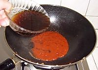 炒锅留少许油烧热,下入葱花,姜末爆香,放入番茄酱