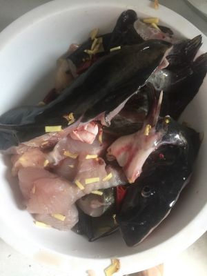 草鱼切块,用盐,白胡椒粉和黄酒腌制10-15分钟