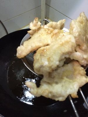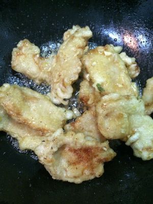 7成热油,肉片要一片片落锅炸制,不要粘连。炸制表皮酥松。