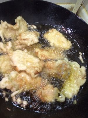 记住,一定要用马铃薯粉挂浆肉片才会酥脆蓬松。