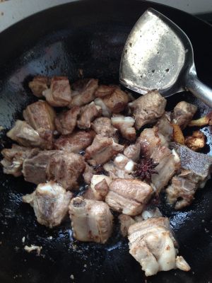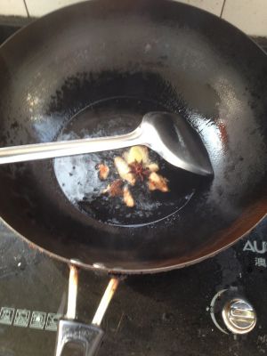 锅里放油,油热后放姜、八角、山奈