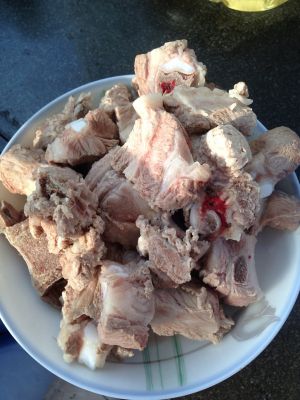 将切好的猪排骨洗两遍,今天下班晚没有买到好精排,不过大块肉特别多。