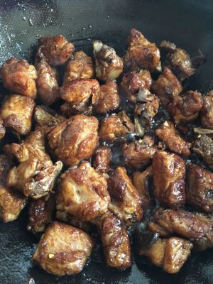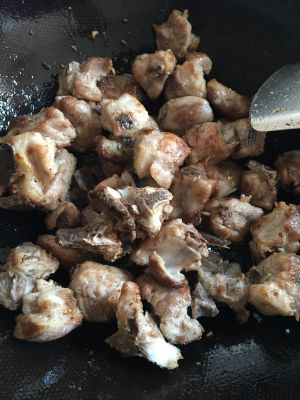 油烧热,放入冰糖化好后放入排骨翻炒入色