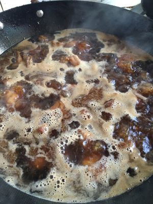 加水,和酱汁,水刚好淹没排骨,大火烧开,然后转小火慢炖,大概30分钟,然后中间可以试一下味道,起锅前可以加点醋,等到水块烧干,就加入芡汁,然后就可以起锅啦