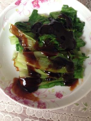 沥干水的生菜装盘,浇上蚝油就OK啦