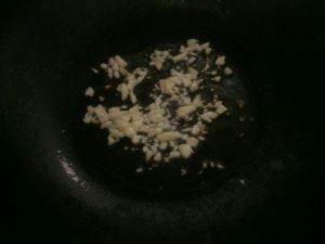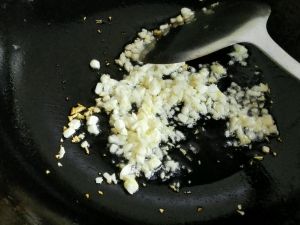 锅里放适量油,烧热后把蒜末下入炒香。