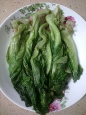 烧锅开水,水开后加少许盐、两滴油,将生菜下入焯约一分钟。