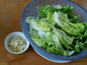 生菜洗净,控干水份,蒜切成沫,备用