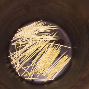 砂锅底部铺上一层折断的竹签