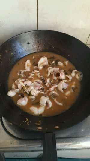 汤汁煮开将鱼片(之前腌制的鱼片要用清水洗干净)放入锅中蒸煮,大约两分钟就可出锅,连着汤汁一起放入盘中