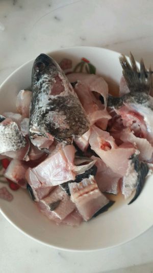 将鱼头、鱼骨、鱼肉用1勺盐、适量啤酒,抓搅1分钟,用流动的清水洗净;