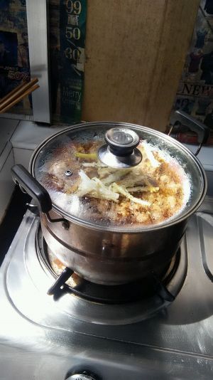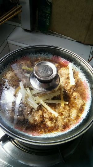 锅里水开后,放进排骨蒸大火二十五分钟出锅