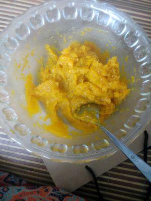 南瓜放入烤箱烤15分钟用勺子压成泥 (上锅蒸的感觉太湿了)