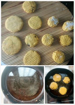 压成饼状后再洒上白芝麻,南瓜饼就等着煎、炸咯!