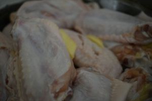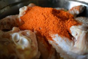 放入奥尔良香料,抓住均匀(不用取出姜片)腌制20分钟,入味