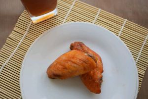 放入烤箱继续烤5分钟,取出,把鸡翅反过来,刷好蜂蜜。
