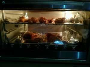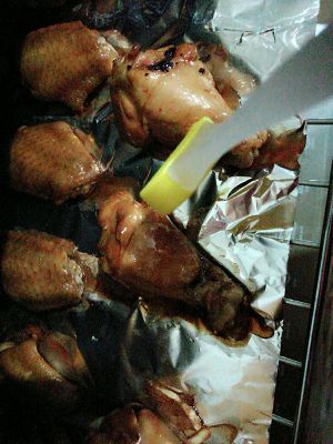 25分钟后,取出再次正反面刷腌制汁及蜂蜜,继续烘烤