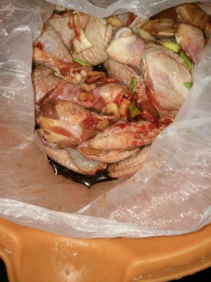 用保鲜膜封好放入冰箱腌制一天(时间越久越入味),期间拿出来把翅根翻转个面,让它更好的入味。