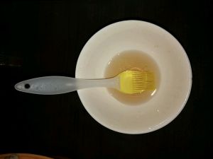 15分钟后取出,正反面各刷上一层腌制汁及蜂蜜,然后继续烘烤
