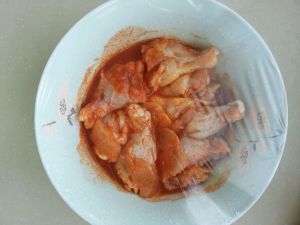 放入鸡翅中搅拌,让鸡翅被调料包裹,盖上保鲜膜腌制四个小时
