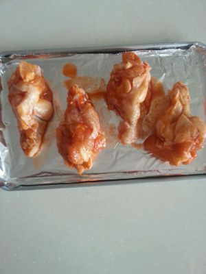 烤盘铺锡纸,把鸡翅放在烤盘上