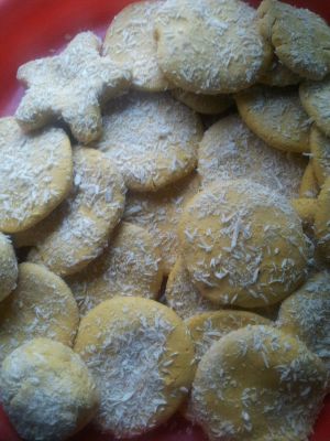 把面团分成多份,揉成饼状,也可以揉成自己喜欢的形状,我就做了一个星形!然后放在面包糠上沾一下!(南瓜饼不要做太厚的,要不然不容易熟)