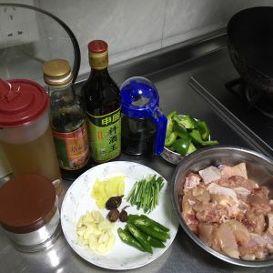 大葱切片稍微厚一点,干辣椒桂皮花椒八角适量。