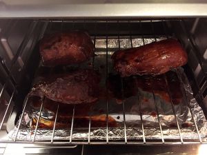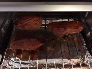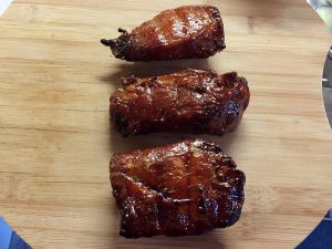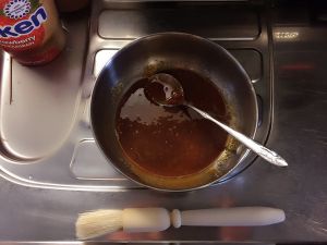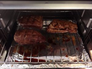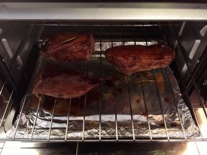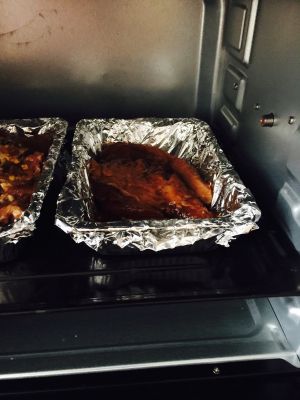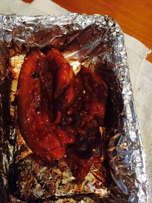 取出,翻面,刷酱汁,烤5分钟。重复以上过程多次,直至觉得上色足够为止。