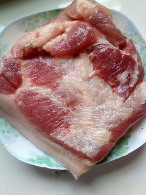 准备五花肉一块,最好是三肥两瘦的夹层肉
