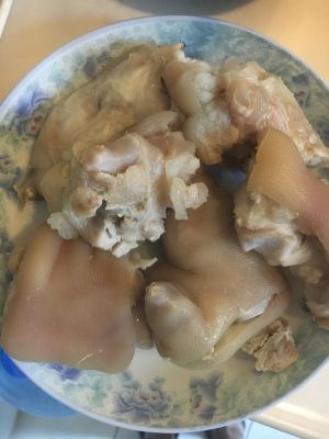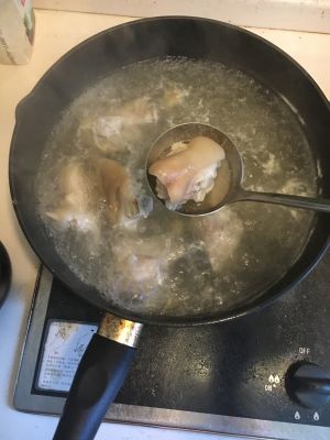 猪手焯水,控干水分备用(猪手请老板帮忙剁好)