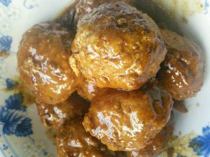 肉圆放入锅内,加老抽,盐,开水,大火煮,不要煮太长时间,等汤少了加一点生粉勾芡。