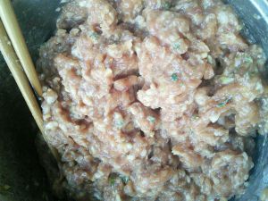 将猪肉洗净,去筋膜,剁成肉末,或者用搅拌机搅打成肉馅