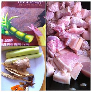 放黄酒,多放点去腥的、然后就红糖两大勺、酱油,茴香、什么树叶的、加水淹没肉就可以了、就慢慢钝吧,盐味精最后放,!看个人口味吧,我其实偏爱放豆瓣酱,味道不要太好 ,可这次没放,家人吃药的。