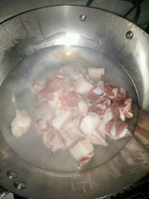 热油 放入冰糖 炒制咖啡色 放入焯好的五花肉翻炒
