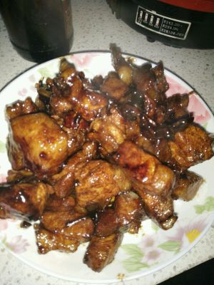 放入料酒,盐,酱油(味精几粒更出味),水半碗,待收汁即可。