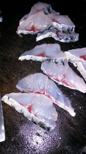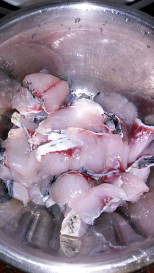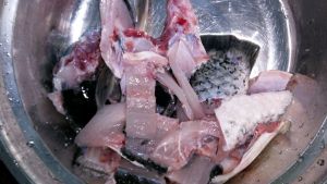 鱼洗干净后斩片,肉和骨头类的单另盛开。