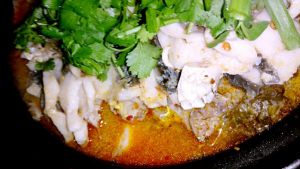水开后放入鱼块,自己感觉熟了就捞起放在事先汤好的白菜豆芽锅里《煮鱼的过程忘记拍照片了》