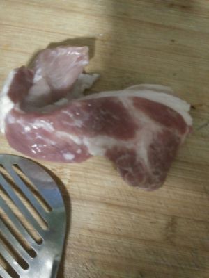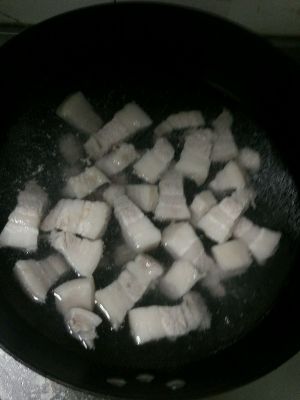 五花肉洗净切块,这是我切剩下的,最好是带皮五花,不过不太容易买到,只买到这种普通的五花肉,大约一斤就够了