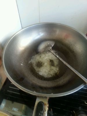 锅内放油,大火烧滚;