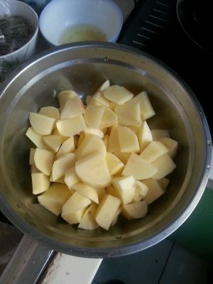土豆洗好,切块备用。