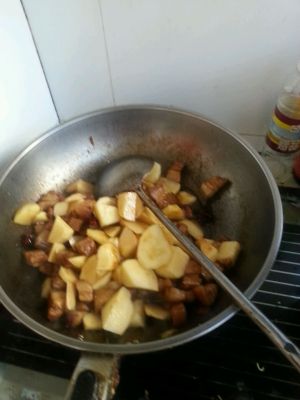 加入之前准备的土豆,持续翻炒ing
