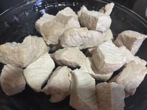瘦肉切块,用水灼下。