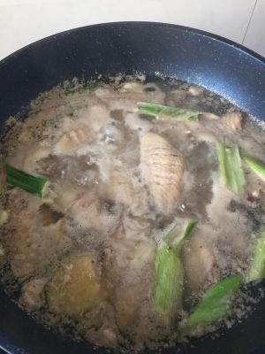 开锅烧水,水滚开之后,加油,一点料酒,下贝壳粉,待贝壳粉透明之后捞起装碟