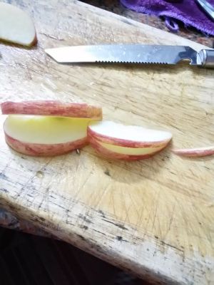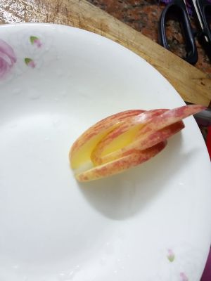 挑一个漂亮的大苹果。切成六瓣。均匀点
