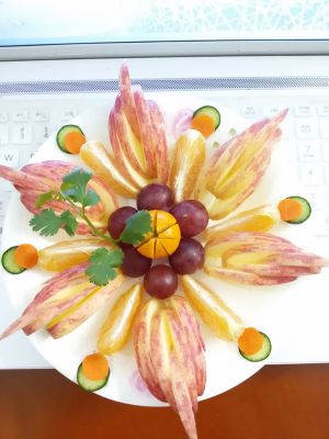 做法4:水果拼盘大杂烩苹果橘子葡萄减肥美容养颜色彩缤纷花世界
