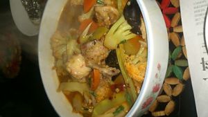菜处理好了,水也差不多烧开了,然后就把主料全部放进去,,,中火十分钟就可以了。