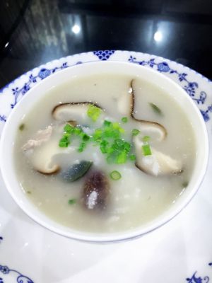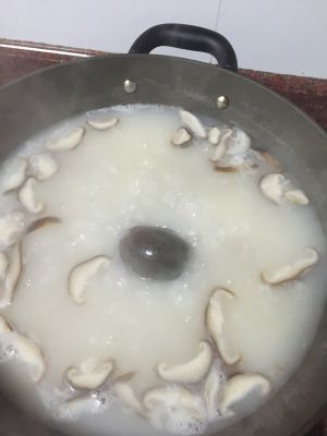 一碗香喷喷热乎乎的香菇皮蛋瘦肉粥就出炉了。希望大家喜欢。谢谢!