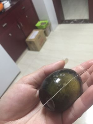 用线将皮蛋切成小丁,(用线切丁不会粘皮蛋,而且切的丁很均匀)