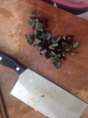 两个皮蛋切丁(切之前建议去腥:锅里加入少量的水加热,水开后放入皮蛋,再加少许盐和白醋,煮一会取出即可)