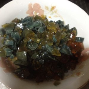 皮蛋3~4颗,切成半个小指肚大小,备用